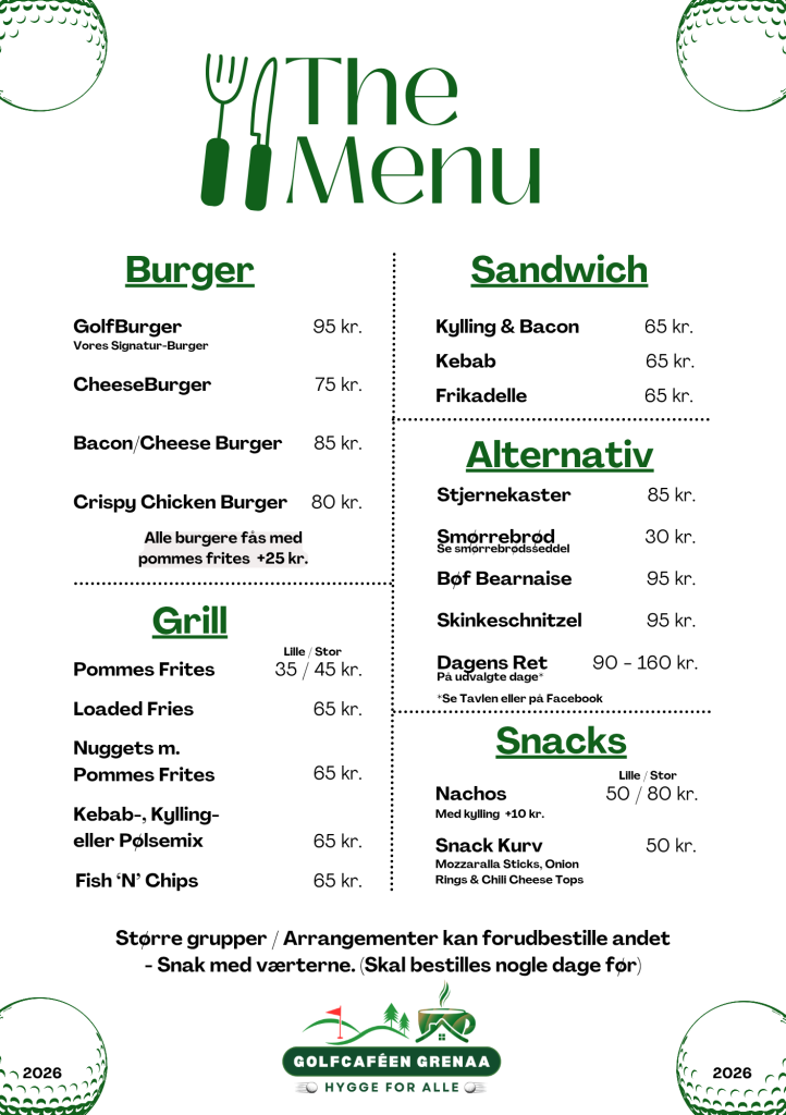 Golfcafeén Grenaa ApS Vestermarken 1 8500 Grenaa OBS! – I bil via Kanalvej.